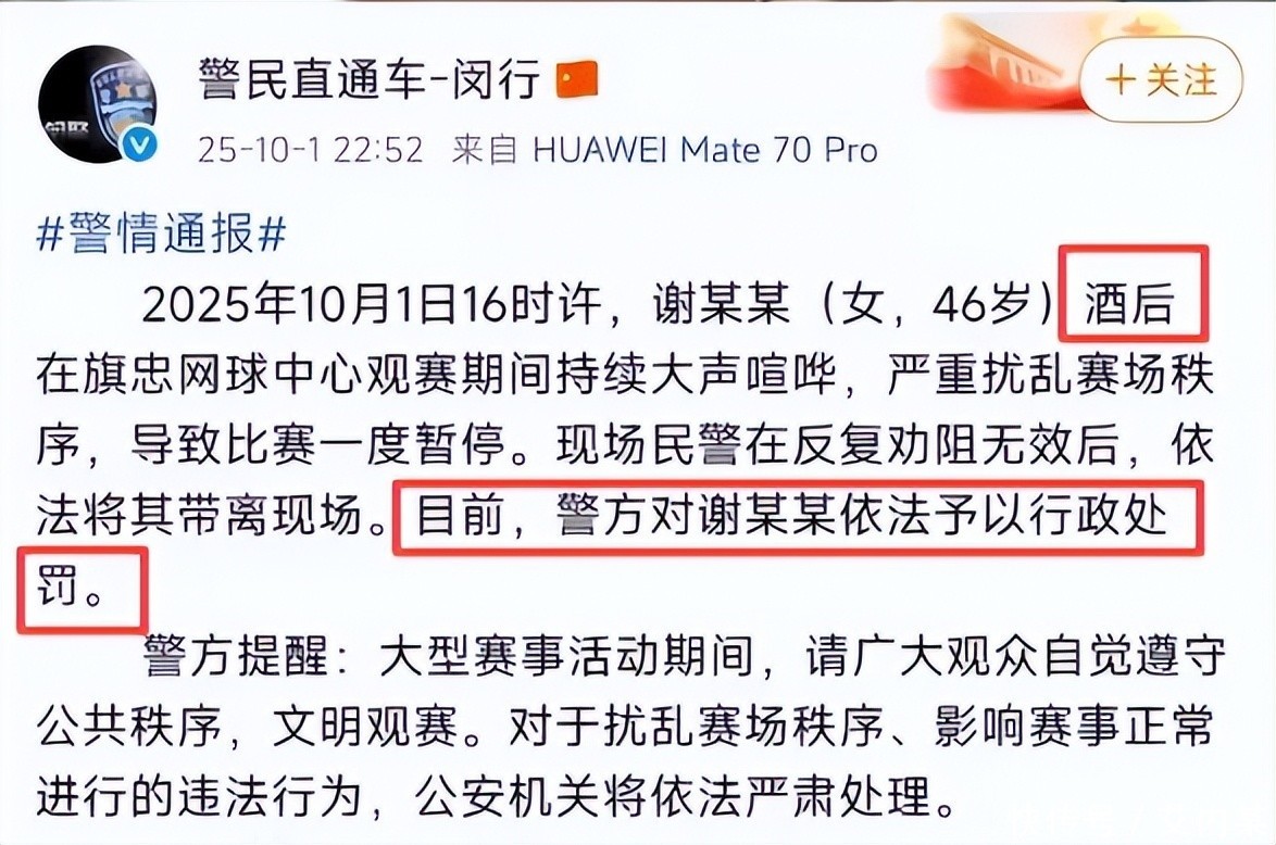 可没想到,谢某见众人的目光放在她的身上,更加放肆了:选手发球时她喊,得分时她更喊,旁边观众好心提醒,她反而叫得更大声。